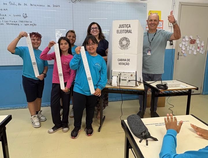 Nesta segunda-feira (15), cerca de 43 estudantes do ensino fundamental de Caxias do Sul participaram de atividades voltadas ao processo de votação no Brasil.